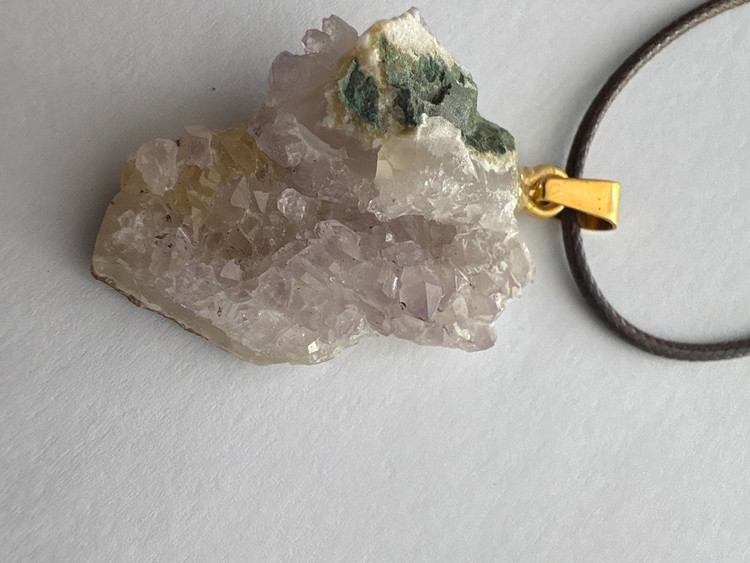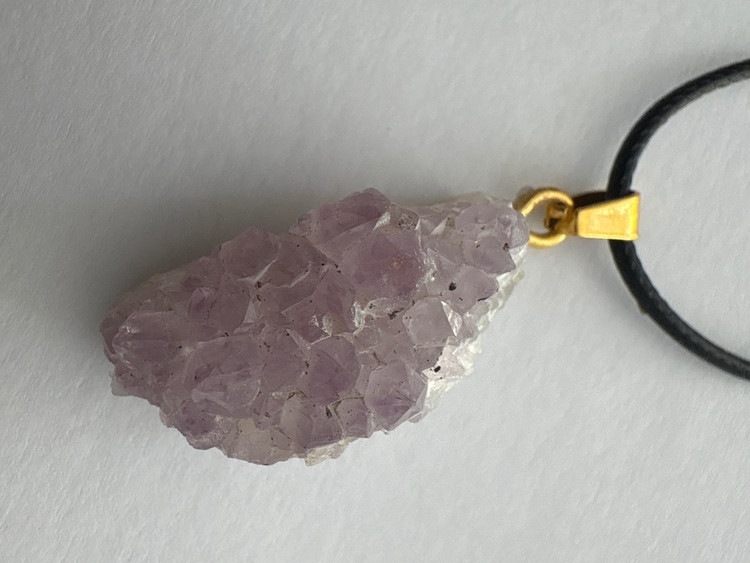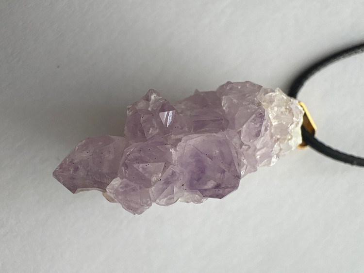 گردنبند طبیعی آمیتیست با بند چرمی